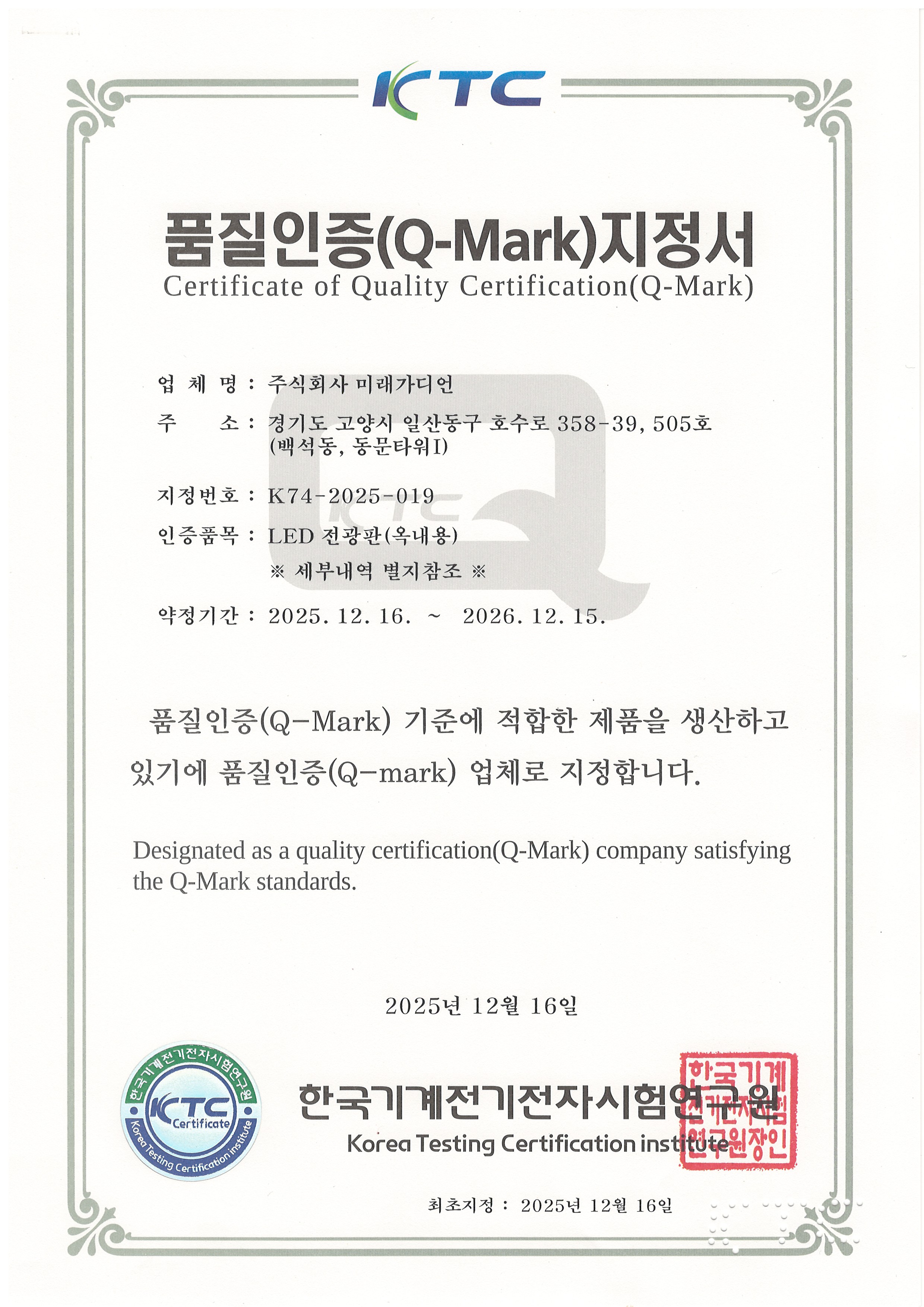 품질인증 Q-MARK 지정업체
