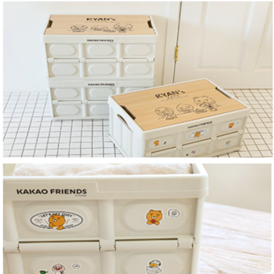 - 튼튼한 우드 상판을 덮어 테이블로 활용 가능하며 카카오프렌즈 친구들의 이미지가 음각 처리되어 단조롭지 않습니다. 원하는 케릭터 및 디자인으로 커스팅 가능